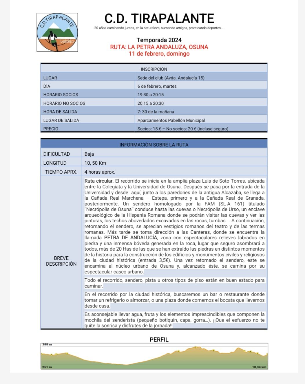 PRECIO: Socios: 15 € – No socios: 20 € (incluye seguro)