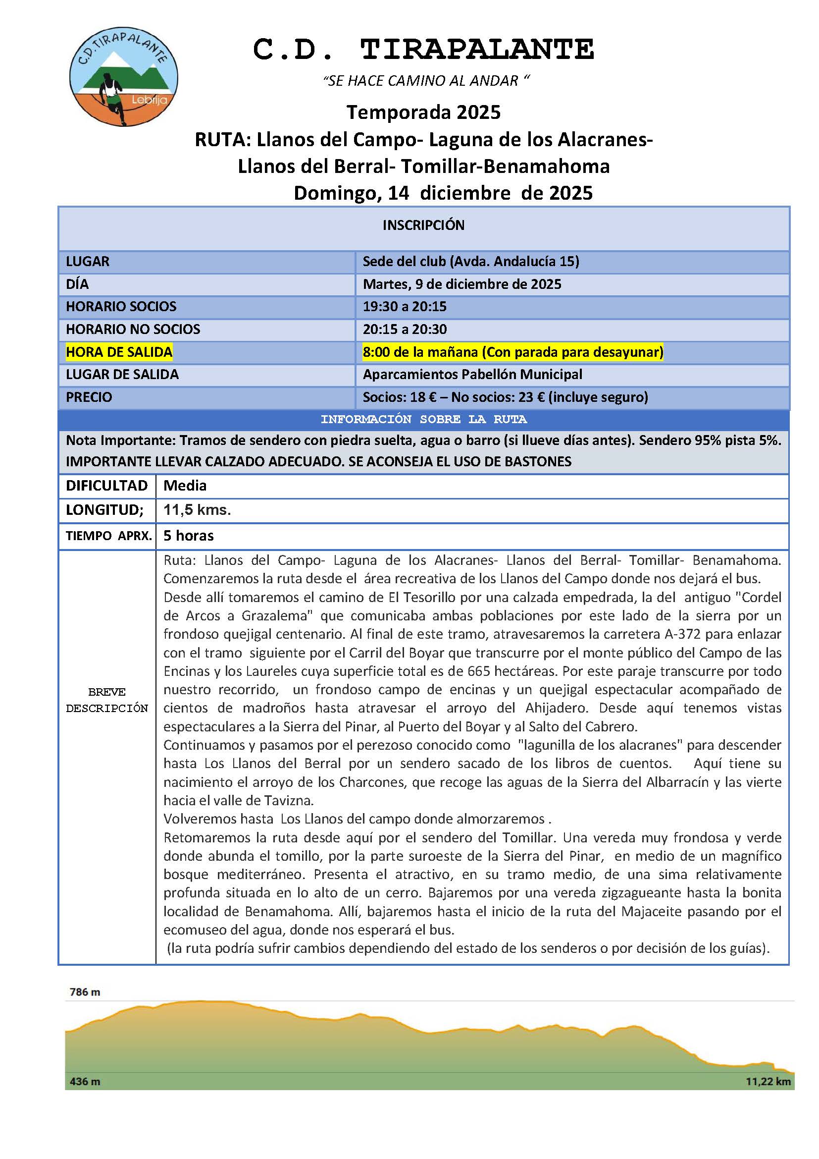 PRECIO Socios: 18 € – No socios: 23 € (incluye seguro)